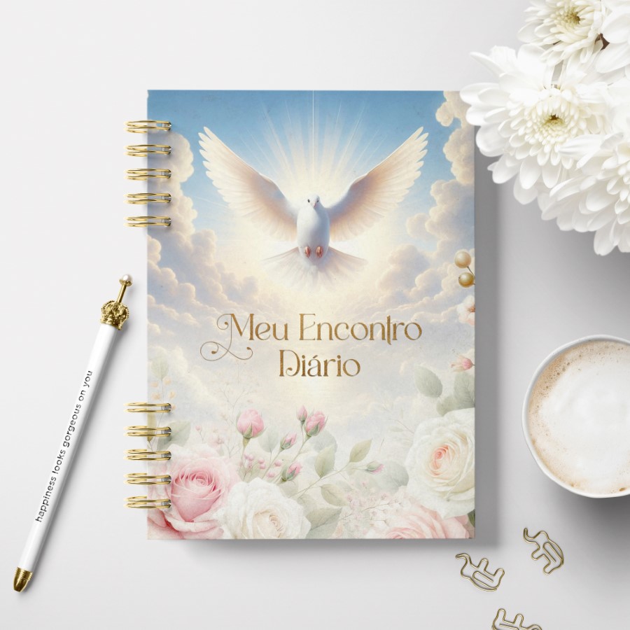 Não é um diário comum — é uma jornada de autoconhecimento e espiritualidade guiada. É um espaço de reconexão interior, que acolhe sua rotina e te aproxima do céu.
